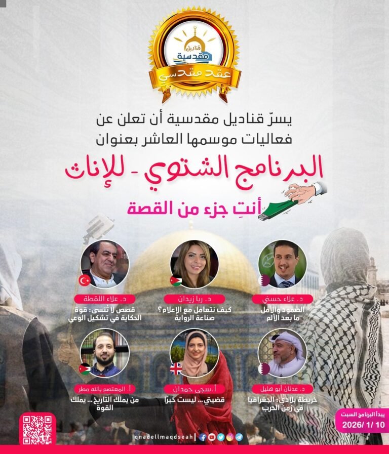 الموسم العاشر - عقد مقدسيسجلي معنا استمارة تسجيلالاسم الأول *اسم الأب *اسم العائلة (الكنية) *تاريخ الميلاد *العمر رقما *الجنسية *اختر بلدAfghanistanAlbaniaAlgeriaAndorraAngolaAntigua and BarbudaArgentinaArmeniaAustraliaAustriaAzerbaijanBahamasBahrainBangladeshBarbadosBelarusBelgiumBelizeBeninBhutanBoliviaBosnia and HerzegovinaBotswanaBrazilBruneiBulgariaBurkina FasoBurundiCambodiaCameroonCanadaCape VerdeCentral African RepublicChadChileChinaColombiaComorosCongoCosta RicaCôte d’IvoireCroatiaCubaCyprusCzech RepublicDenmarkDjiboutiDominicaDominican RepublicEcuadorEgyptEl SalvadorEquatorial GuineaEritreaEstoniaEswatiniEthiopiaFijiFinlandFranceGabonGambiaGeorgiaGermanyGhanaGreeceGrenadaGuatemalaGuineaGuinea-BissauGuyanaHaitiHondurasHungaryIcelandIndiaIndonesiaIranIraqIrelandItalyJamaicaJapanJordanKazakhstanKenyaKiribatiKuwaitKyrgyzstanLaosLatviaLebanonLesothoLiberiaLibyaLiechtensteinLithuaniaLuxembourgMadagascarMalawiMalaysiaMaldivesMaliMaltaMarshall IslandsMauritaniaMauritiusMexicoMicronesiaMoldovaMonacoMongoliaMontenegroMoroccoMozambiqueMyanmarNamibiaNauruNepalNetherlandsNew ZealandNicaraguaNigerNigeriaNorth KoreaNorth MacedoniaNorwayOmanPakistanPalauPalestinePanamaPapua New GuineaParaguayPeruPhilippinesPolandPortugalQatarRomaniaRussiaRwandaSaint Kitts and NevisSaint LuciaSaint Vincent and the GrenadinesSamoaSan MarinoSao Tome and PrincipeSaudi ArabiaSenegalSerbiaSeychellesSierra LeoneSingaporeSlovakiaSloveniaSolomon IslandsSomaliaSouth AfricaSouth KoreaSouth SudanSpainSri LankaSudanSurinameSwedenSwitzerlandSyriaTajikistanTanzaniaThailandTimor-LesteTogoTongaTrinidad and TobagoTunisiaTurkeyTurkmenistanTuvaluUgandaUkraineUnited Arab EmiratesUnited KingdomUnited StatesUruguayUzbekistanVanuatuVatican CityVenezuelaVietnamYemenZambiaZimbabweبلد الإقامة *اختر بلدAfghanistanAlbaniaAlgeriaAndorraAngolaAntigua and BarbudaArgentinaArmeniaAustraliaAustriaAzerbaijanBahamasBahrainBangladeshBarbadosBelarusBelgiumBelizeBeninBhutanBoliviaBosnia and HerzegovinaBotswanaBrazilBruneiBulgariaBurkina FasoBurundiCambodiaCameroonCanadaCape VerdeCentral African RepublicChadChileChinaColombiaComorosCongoCosta RicaCôte d’IvoireCroatiaCubaCyprusCzech RepublicDenmarkDjiboutiDominicaDominican RepublicEcuadorEgyptEl SalvadorEquatorial GuineaEritreaEstoniaEswatiniEthiopiaFijiFinlandFranceGabonGambiaGeorgiaGermanyGhanaGreeceGrenadaGuatemalaGuineaGuinea-BissauGuyanaHaitiHondurasHungaryIcelandIndiaIndonesiaIranIraqIrelandItalyJamaicaJapanJordanKazakhstanKenyaKiribatiKuwaitKyrgyzstanLaosLatviaLebanonLesothoLiberiaLibyaLiechtensteinLithuaniaLuxembourgMadagascarMalawiMalaysiaMaldivesMaliMaltaMarshall IslandsMauritaniaMauritiusMexicoMicronesiaMoldovaMonacoMongoliaMontenegroMoroccoMozambiqueMyanmarNamibiaNauruNepalNetherlandsNew ZealandNicaraguaNigerNigeriaNorth KoreaNorth MacedoniaNorwayOmanPakistanPalauPalestinePanamaPapua New GuineaParaguayPeruPhilippinesPolandPortugalQatarRomaniaRussiaRwandaSaint Kitts and NevisSaint LuciaSaint Vincent and the GrenadinesSamoaSan MarinoSao Tome and PrincipeSaudi ArabiaSenegalSerbiaSeychellesSierra LeoneSingaporeSlovakiaSloveniaSolomon IslandsSomaliaSouth AfricaSouth KoreaSouth SudanSpainSri LankaSudanSurinameSwedenSwitzerlandSyriaTajikistanTanzaniaThailandTimor-LesteTogoTongaTrinidad and TobagoTunisiaTurkeyTurkmenistanTuvaluUgandaUkraineUnited Arab EmiratesUnited KingdomUnited StatesUruguayUzbekistanVanuatuVatican CityVenezuelaVietnamYemenZambiaZimbabweرقم الهاتف *البريد الإلكتروني *موافقة ولي الأمر *أوافق على مشاركة ابنتي في برنامج النادي لمدة 6 أسابيع -عن بعد-، وأتعهد بتوفير الدعم اللازم لحضورها جميع الجلسات.ما الذي جذبكِ لفكرة النادي؟ *التعرّف على صديقات جددتنمية الثقة بالنفسالتعلّم والمشاركةحبّ العمل الجماعيالفضول والتجربةسبب آخر (اختياري)أي الأنشطة تحبين أكثر؟ *أنشطة فنيةأنشطة ثقافيةأنشطة تفاعليةأنشطة تطوعيةأحب التجربة ولا أعرف بعدهل شاركتِ سابقًا في أي نشاط؟ *نعملاهذه أول تجربةكيف تحبين أن تشاركي؟ *أفضّل العمل الجماعيأفضّل الاستماع والتعلّمأحب المشاركة بالكلامأحب العمل خلف الكواليسهل تحبين إضافة أي شيء تحبينه عن نفسك؟ (اختياري)الالتزام *أتعهد بحضور جميع الجلسات والمشاركة الفعالة في الأنشطة.تسجيل